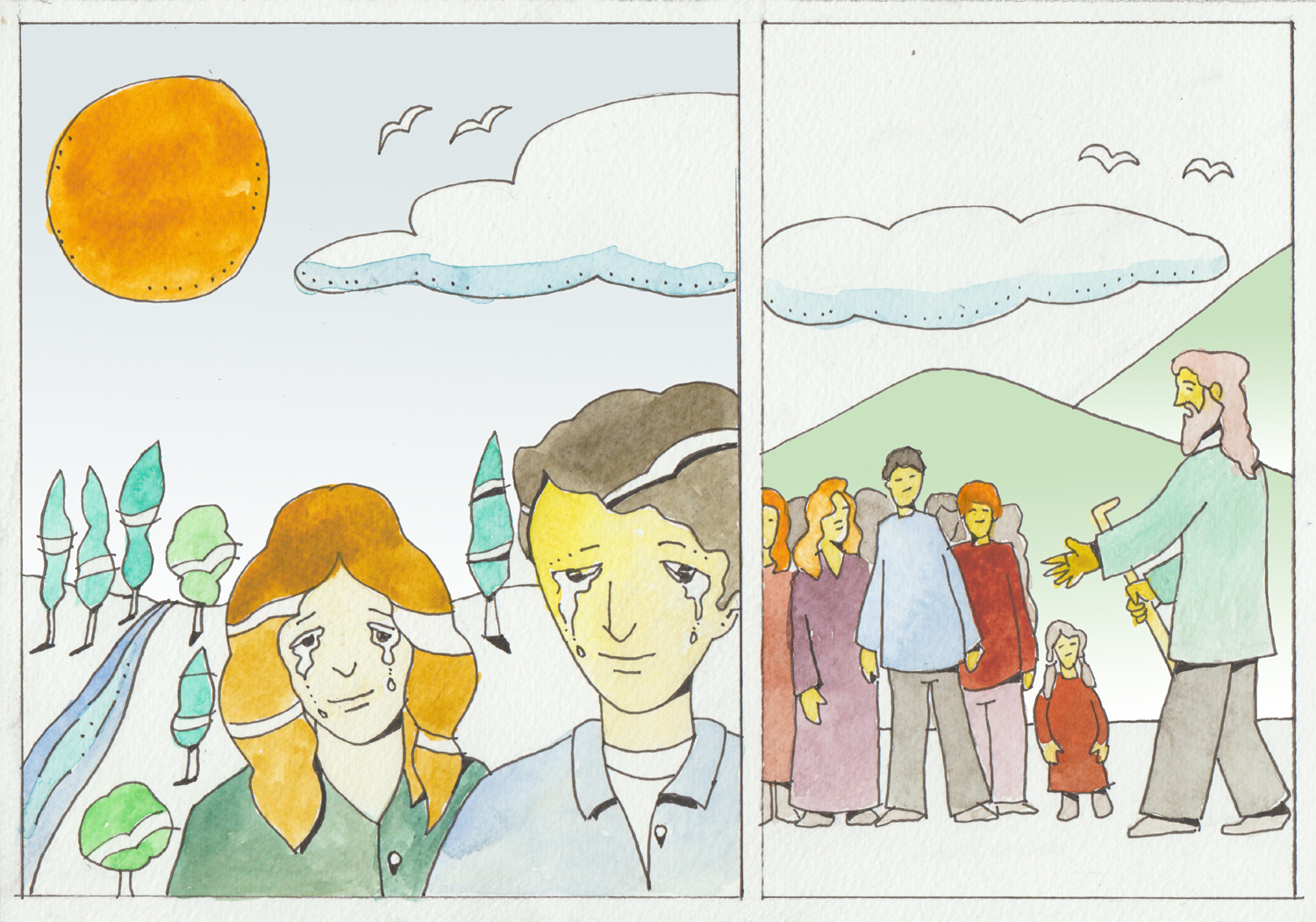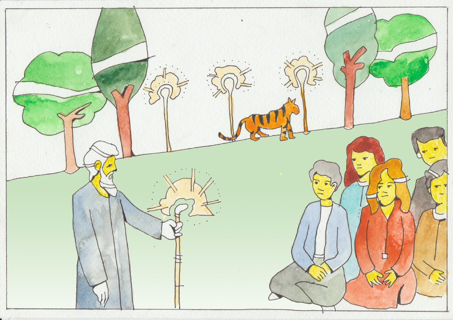 Her şey tıpkı Nuh’un hikâyesinde olduğu gibi tecelli eder. Nuh gemiden oğluna seslenir, “Gemiye bin, fırtına geliyor.” Oğlu, “Ben şu dağa sığınacağım, o beni sudan korur,” deyince Nuh, “Bugün Allah’ın esirgemesi dışında başka bir koruma yoktur,” diye cevap verir ve ikisi arasına dalga girer.